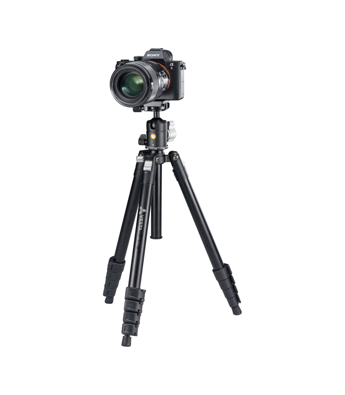 También incluye una rótula de bola VESTA T-51 compatible con Arca Swiss con una gran perilla de bloqueo para facilitar el bloqueo/desbloqueo mientras trabaja, y una zapata de liberación rápida QS-64.