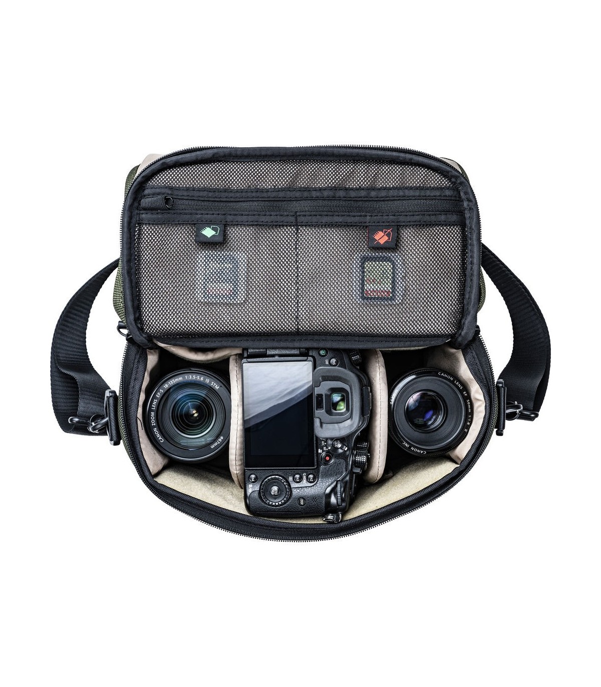 If you're traveling light, you'll want your shoulder bag to suit the gear inside you. The VEO SELECT 22S is designed with spacious modular dividers to protect a DSLR digital camera with a built-in lens, 1 or 2 extra lenses, a flash, essential accessories, and even a mini tablet.