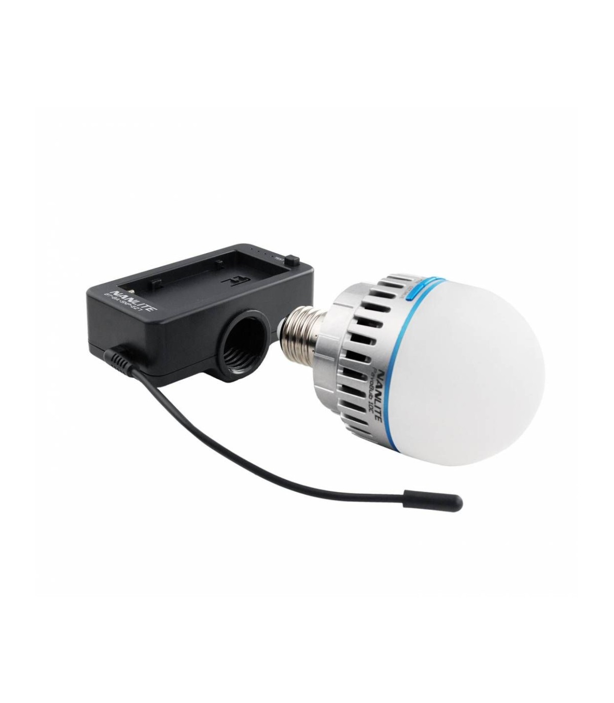 For PavoBulb 10 C. Features an E27 socket for easy connection by simply screwing in; NP-F battery holder and type C power cable that can power the device with an NP-F battery through the type C port; An E27 plug thread connector and a 1/4 mounting receiver for easy mounting.