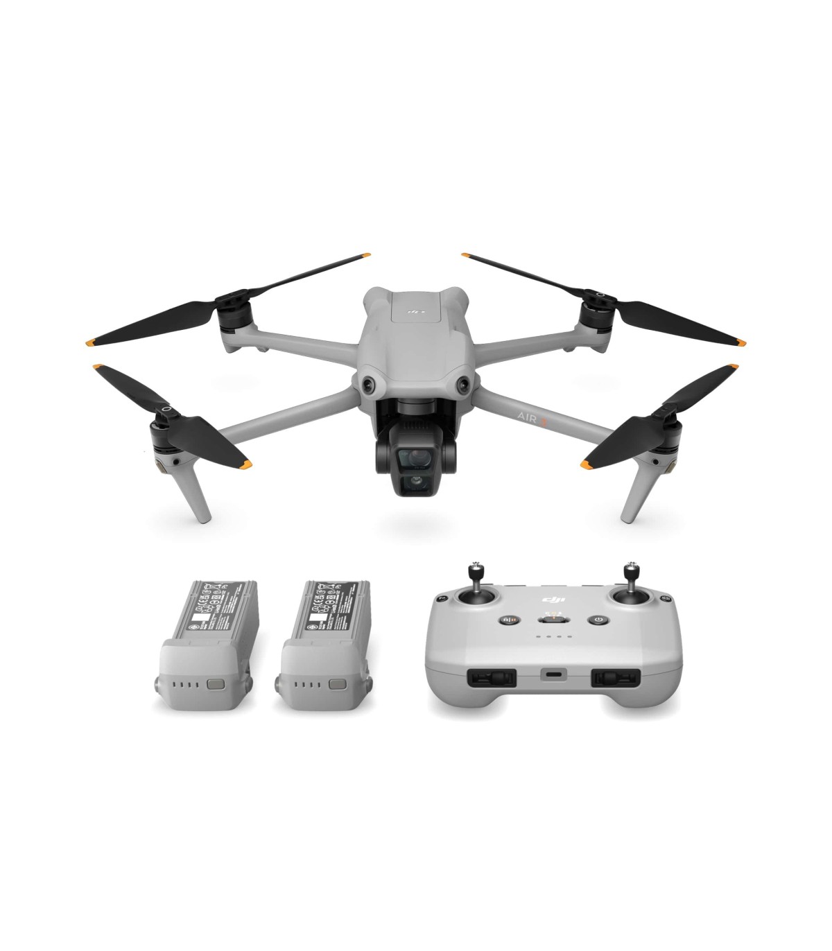 For pilots who want to be well-equipped from the start, this Fly More Combo version of the Air 3 upgrades the remote control and adds additional essential accessories compared to the standard version. You get an Air 3 battery charging hub, two additional intelligent flight batteries, three additional pairs of low-noise propellers, and a shoulder bag.