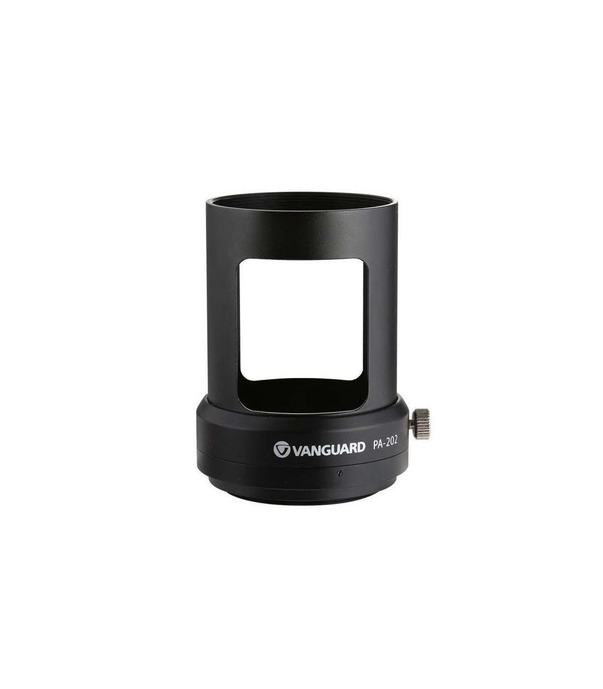 PA-202 digiscoping adapter for connecting a camera lens to a Vanguard spotting scope. Fully metal adapter that allows you to use the scope as a telephoto lens attached to the camera lens with the same circular filter attachment system. It is suitable for lenses with a 58mm output and includes a reducing ring that makes it also compatible with lenses with a 52mm output. For other lens sizes, a reducing ring may be necessary. It includes a 360-degree rotating locking wheel to quickly and securely rotate the camera.