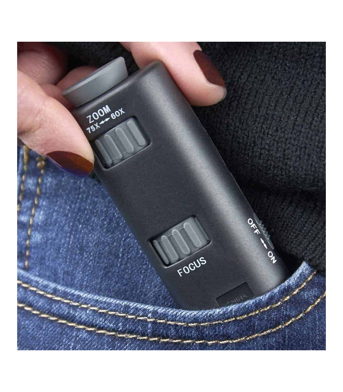 The MicroMax LED™, MM-200 is a pocket microscope with a powerful magnification of 60-75x and an ultra-lightweight and portable design. It has an LED light to provide a clear and bright image. Its rubber eyepiece is very comfortable. The MicroMax LED™ easily fits into a pocket so you can take it anywhere. It comes with 3 button batteries.