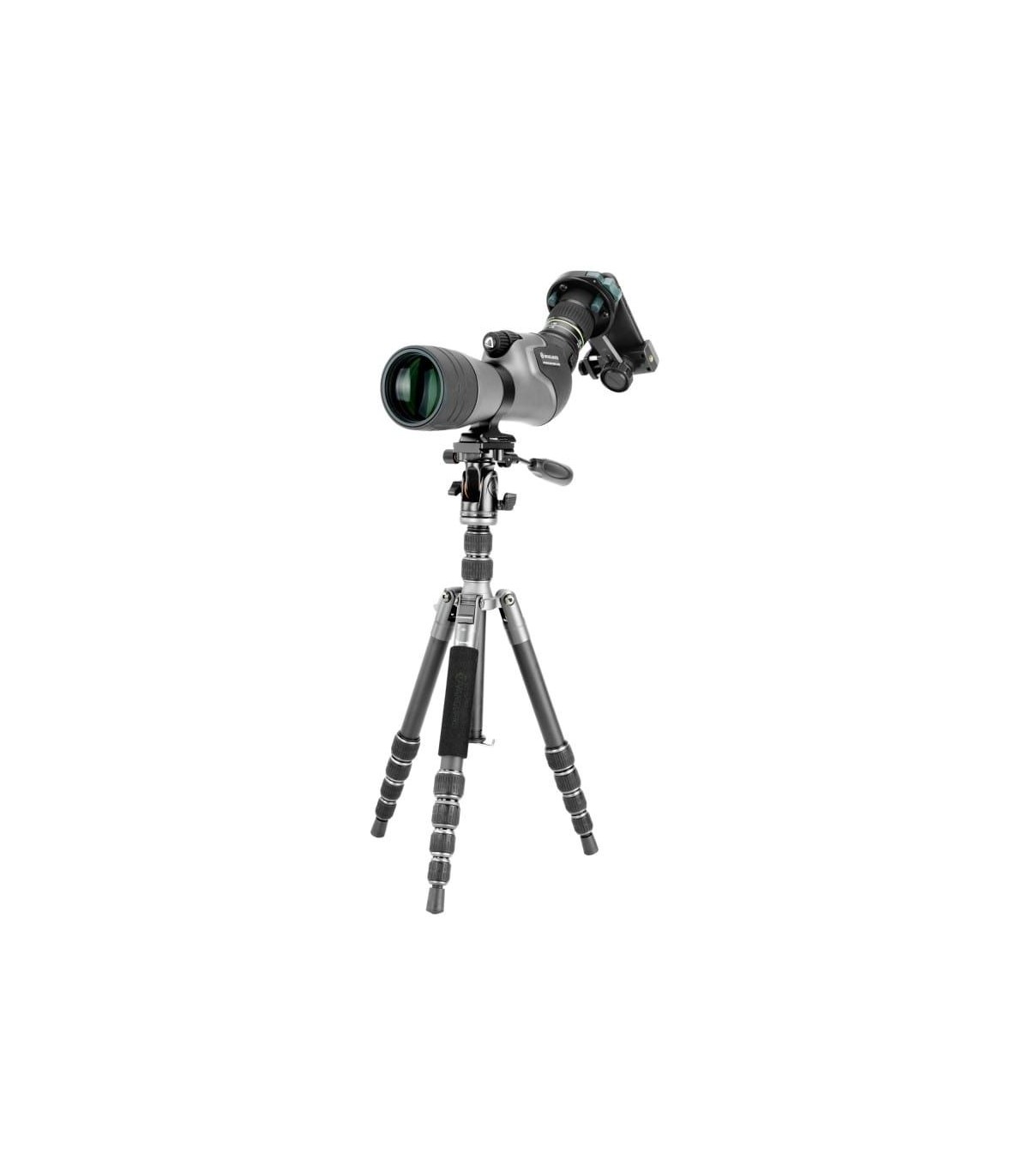 This kit includes the Endeavor HD 65A terrestrial telescope, along with the compact and stable Veo 3GO 235AP tripod and, additionally, the Veo PA-65 universal mobile adapter for digiscoping, which allows you to capture photos and videos with your smartphone using the telescope's optical range.
